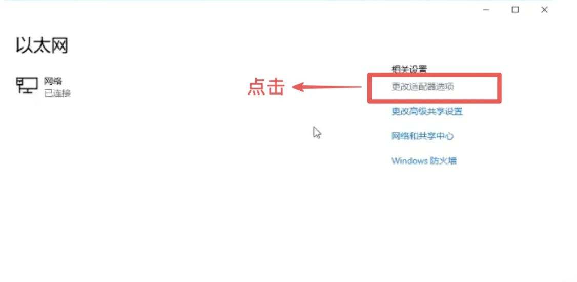 点击以太网->点击更改适配器选项