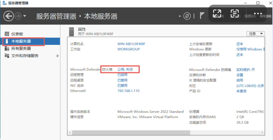打开服务器管理->找到本地服务->关闭防火墙