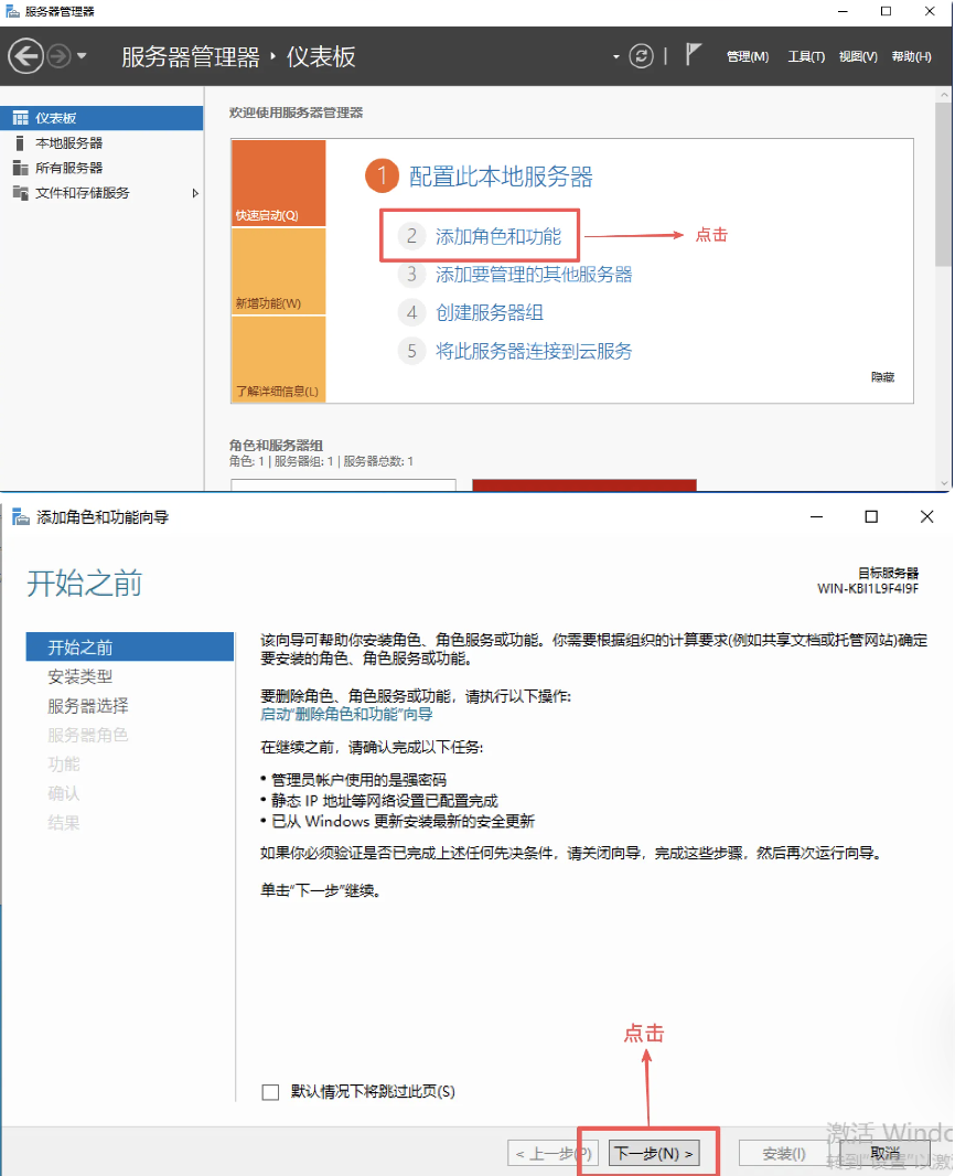 服务器管理->添加角色和功能->开始之前->下一步