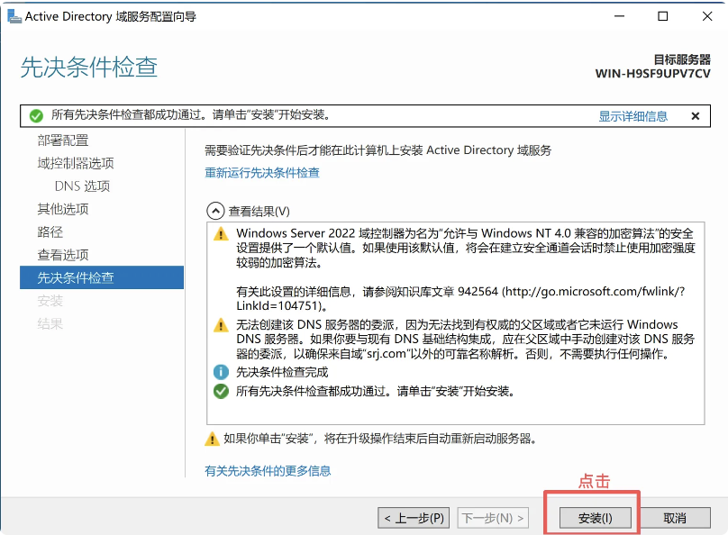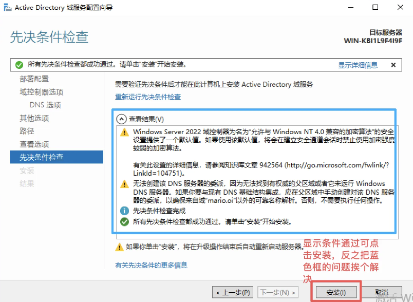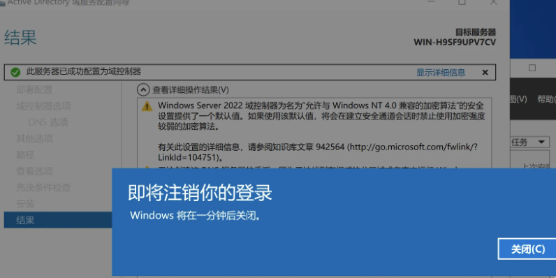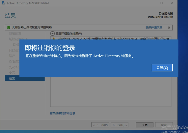 安装和结果(这期间主域控一定不能关机)