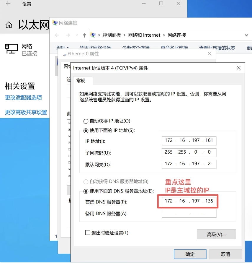 更改ipv4的ip、子网掩码、DNS配置