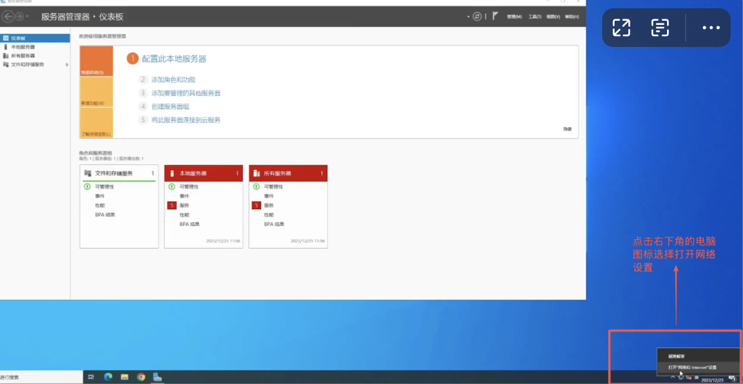 点击右下角电脑图标->点击打开网络和interneit