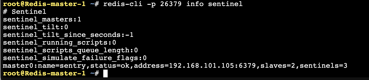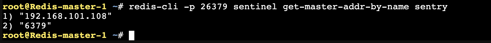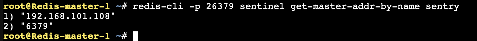 redis-cli -p 26379 sentinel get-master-addr-by-name sentry结果图