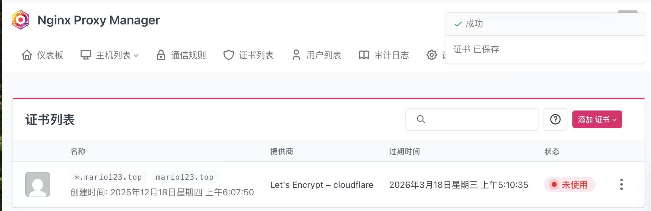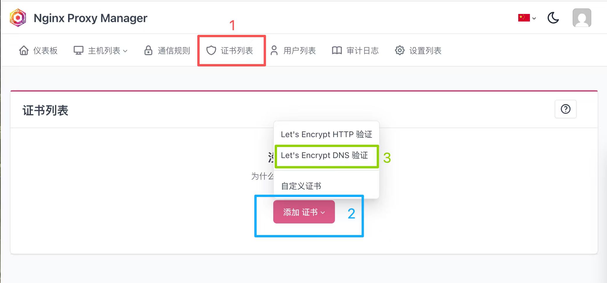 步骤7:进入Nginx Proxy Manager我们开始配置证书