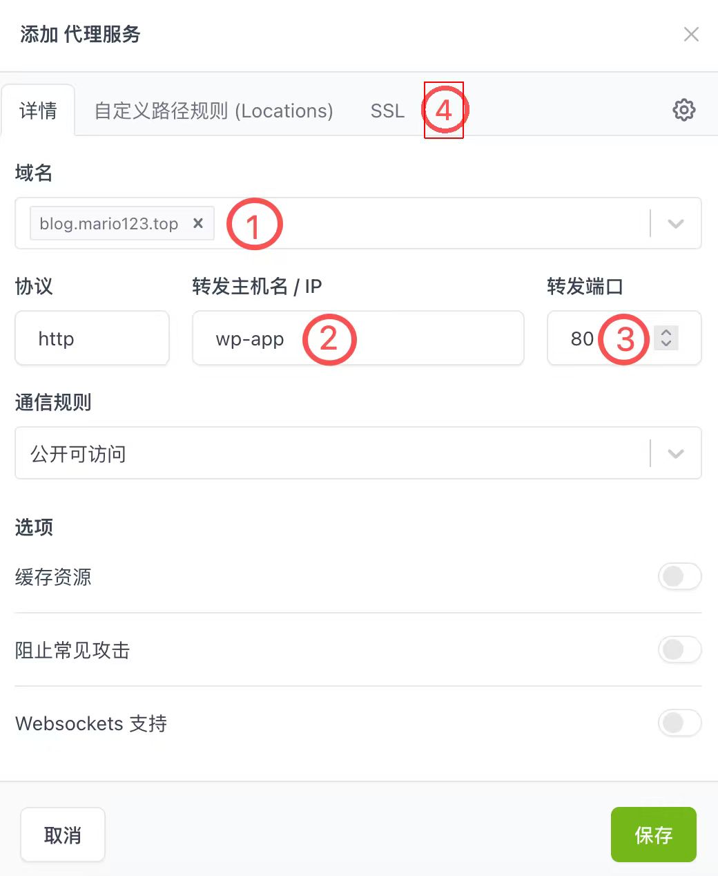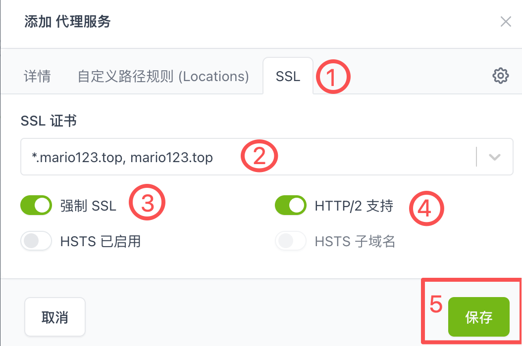 步骤8:添加你购买的域名并确定保存