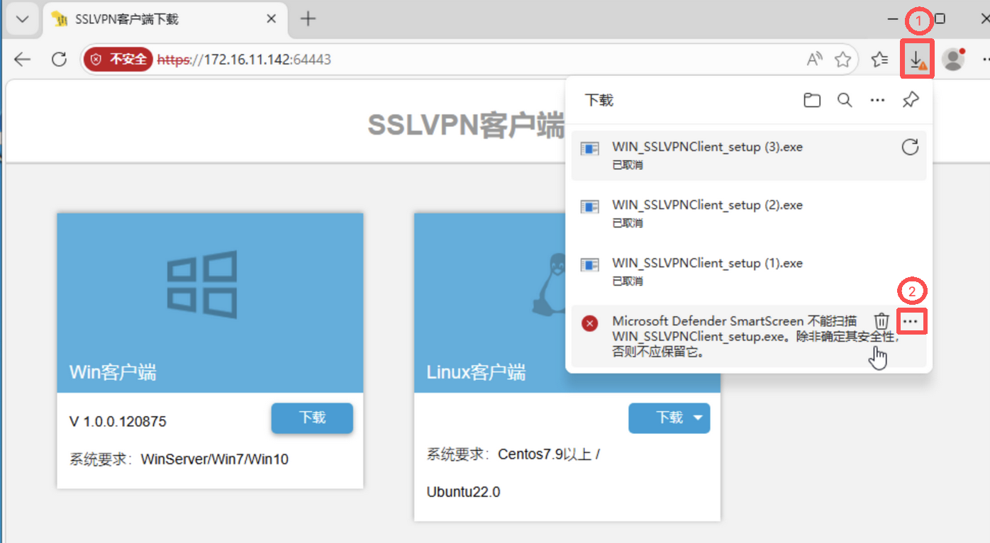 SSL VPN客户端安装被拦截:确认发布者为奇安信,手动放行,安装国际版(与防火墙算法匹配)