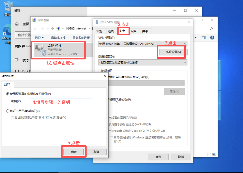 L2TP over IPSec = IPSec 加密 + L2TP 封装,先通过IPSec建立加密隧道(保障数据安全),再通过L2TP协议实现远程接入(负责用户身份认证、IP分配),核心优势是Win10原生支持,无需安装任何客户端,适配老旧终端