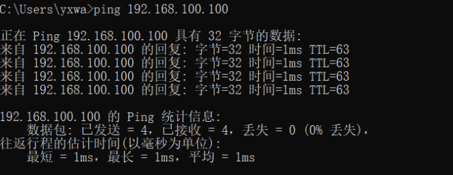 验证3: 在客户端上尝试Ping内网服务器的IP地址,查看网络连通性