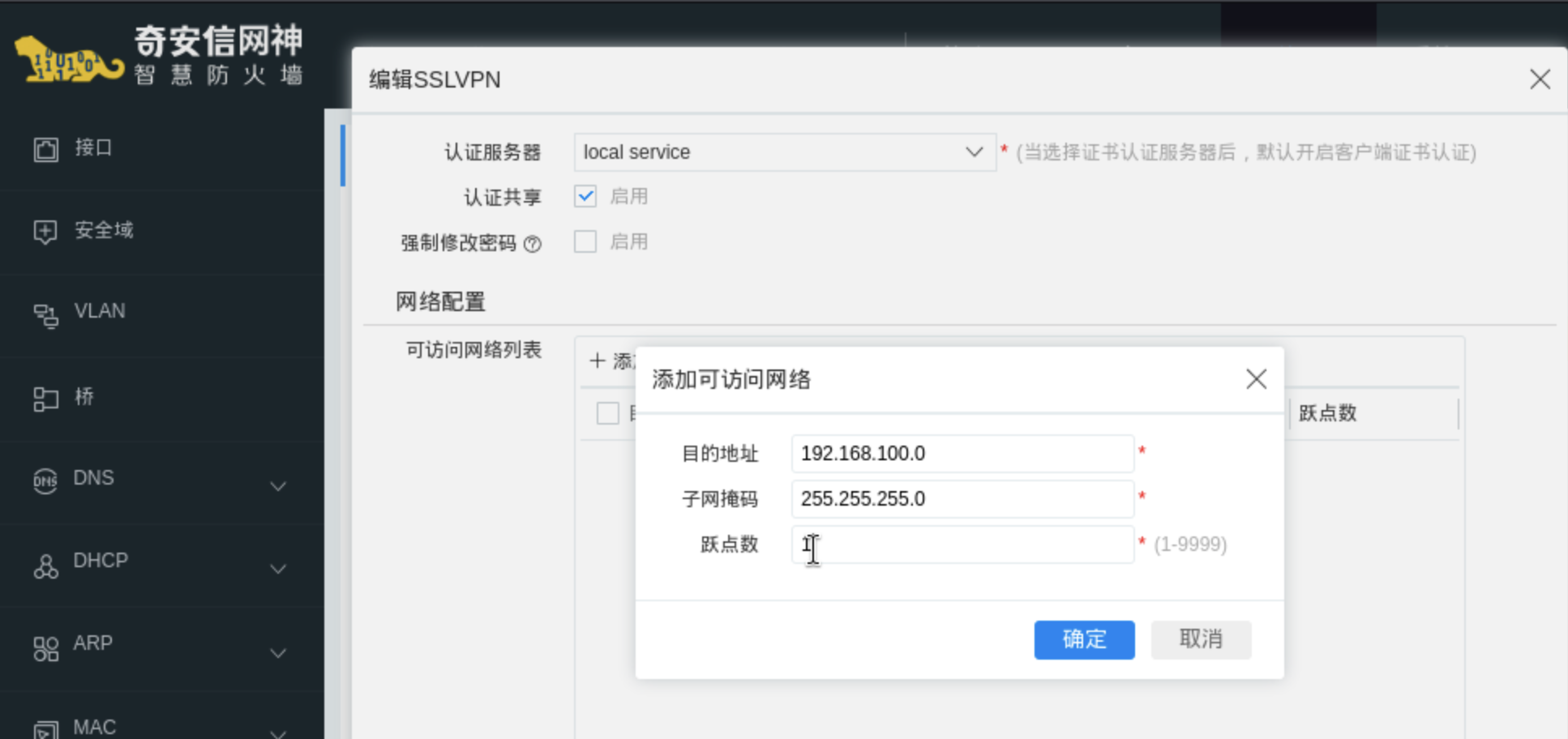 作用:与L2TP地址池作用一致,为SSL VPN客户端分配虚拟IP,让客户端获得内网“身份”,访问内网资源。
