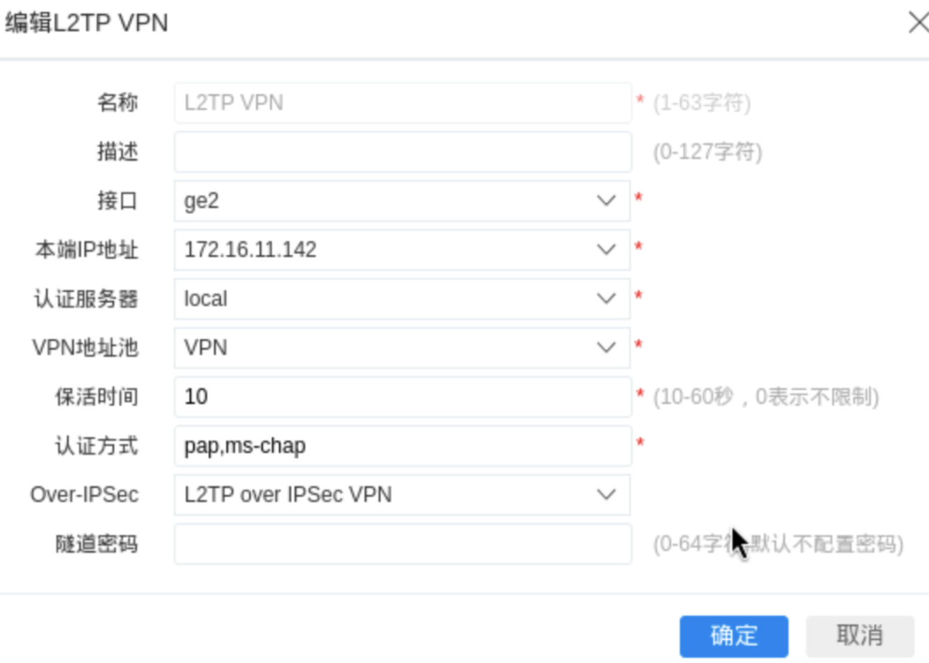 操作路径:网络配置 -> VPN -> L2TP VP -> 添加