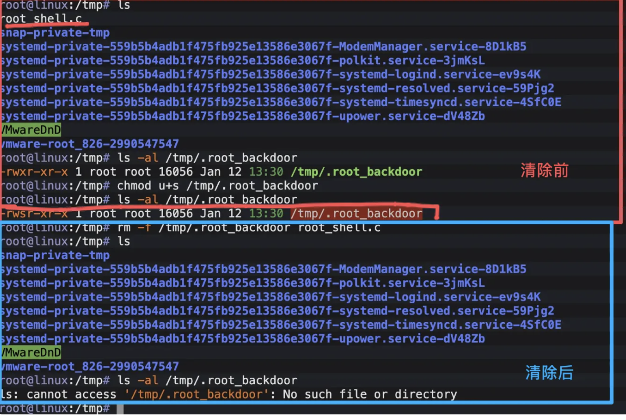 sudo rm /tmp/.ld_preload_log更隐蔽的版本