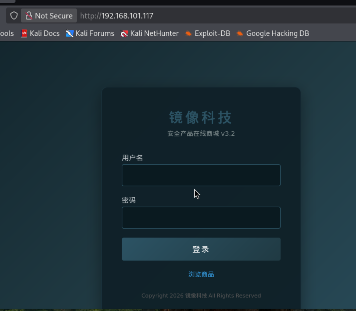 用浏览器登录我们扫描出来的ip,根据前面信息收集知道这只是一个单纯的登录界面