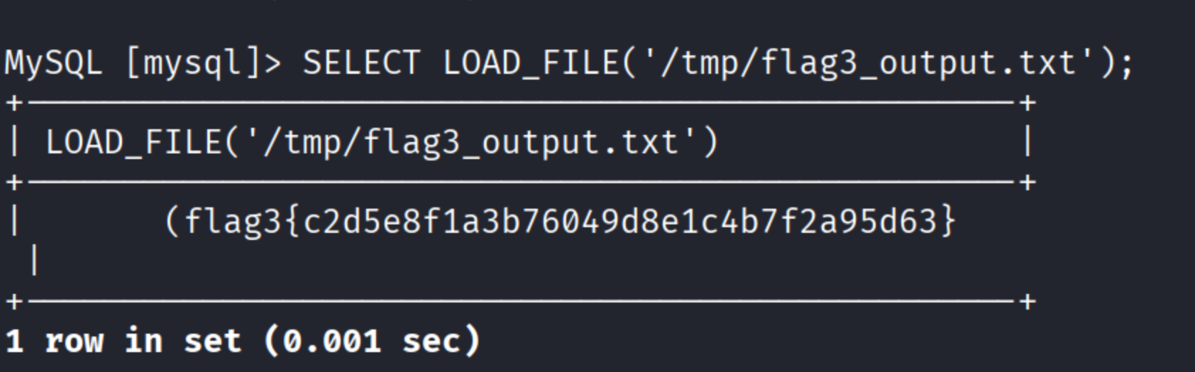 SELECT LOAD_FILE('/tmp/out.txt');结果图