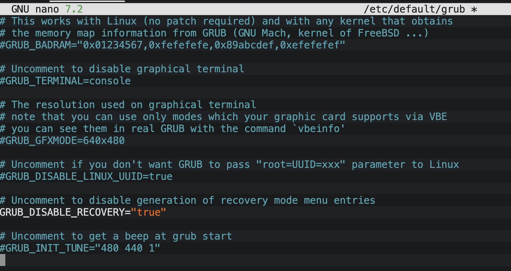 GRUB_DISABLE_RECOVERY="true"