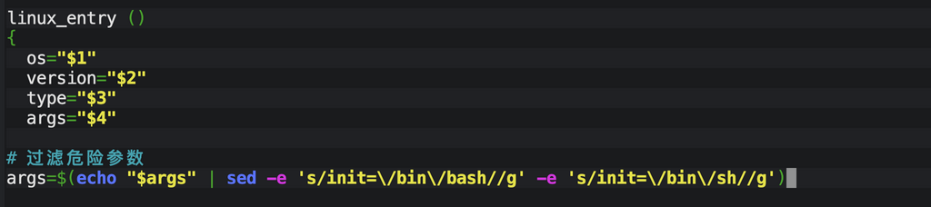 args=$(echo "$args" | sed -e 's/init=\/bin\/bash//g' -e 's/init=\/bin\/sh//g')结果图