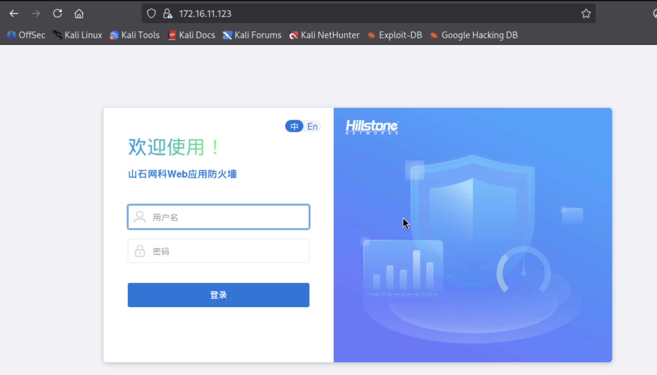 浏览器访问 vWAF 管理口https://172.16.11.123,用默认账号hillstone/hillstone登录
