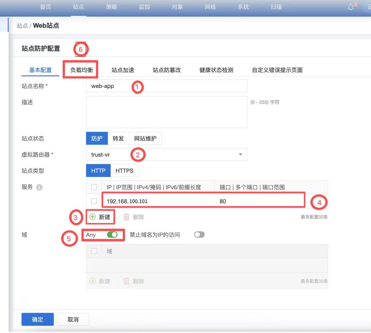 192.168.100.101),你必须明确告诉 WAF,当192.168.100.101的 80 端口收到请求时,才触发这个web-app的防护策略
