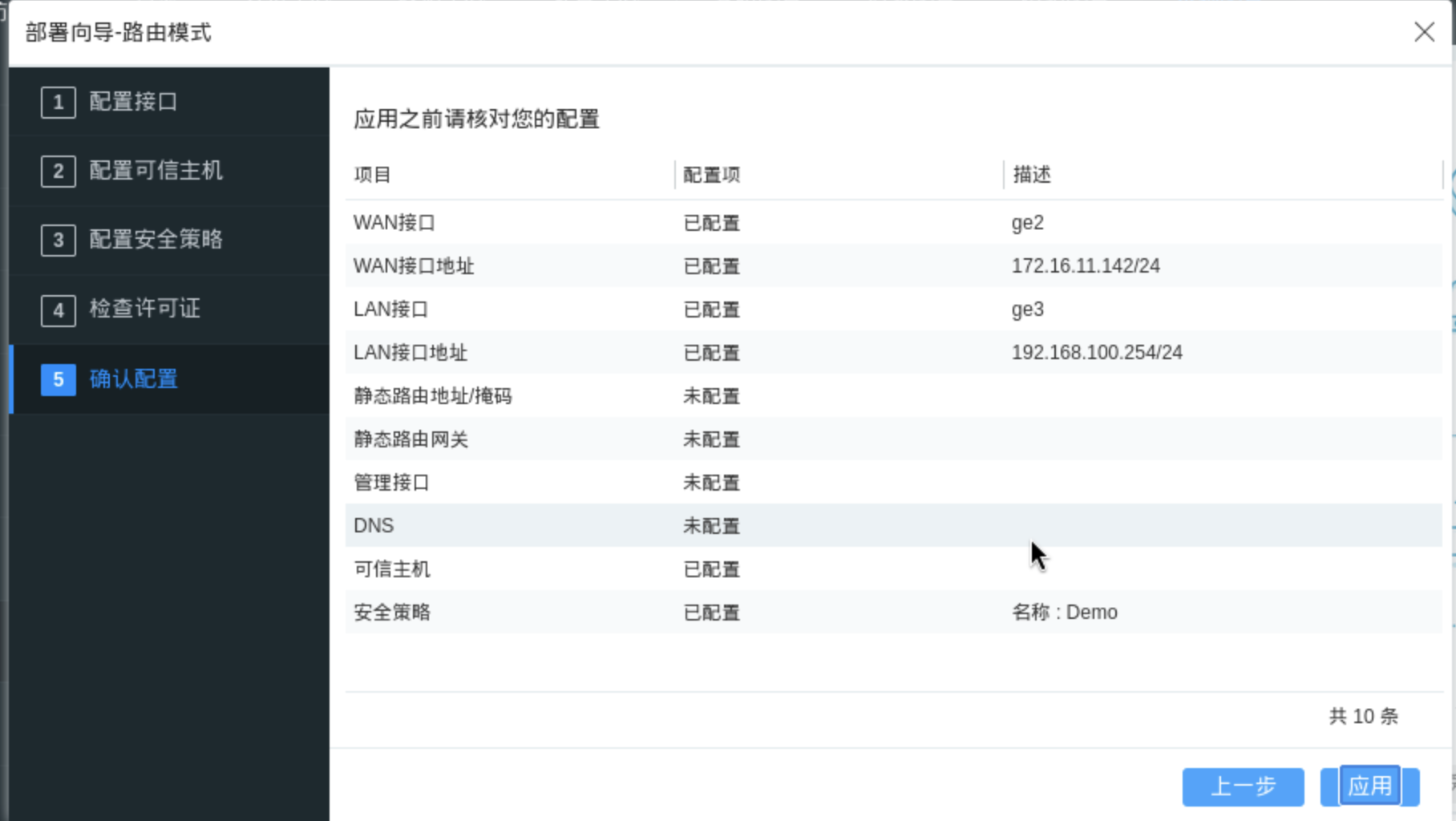 确认配置:点击应用