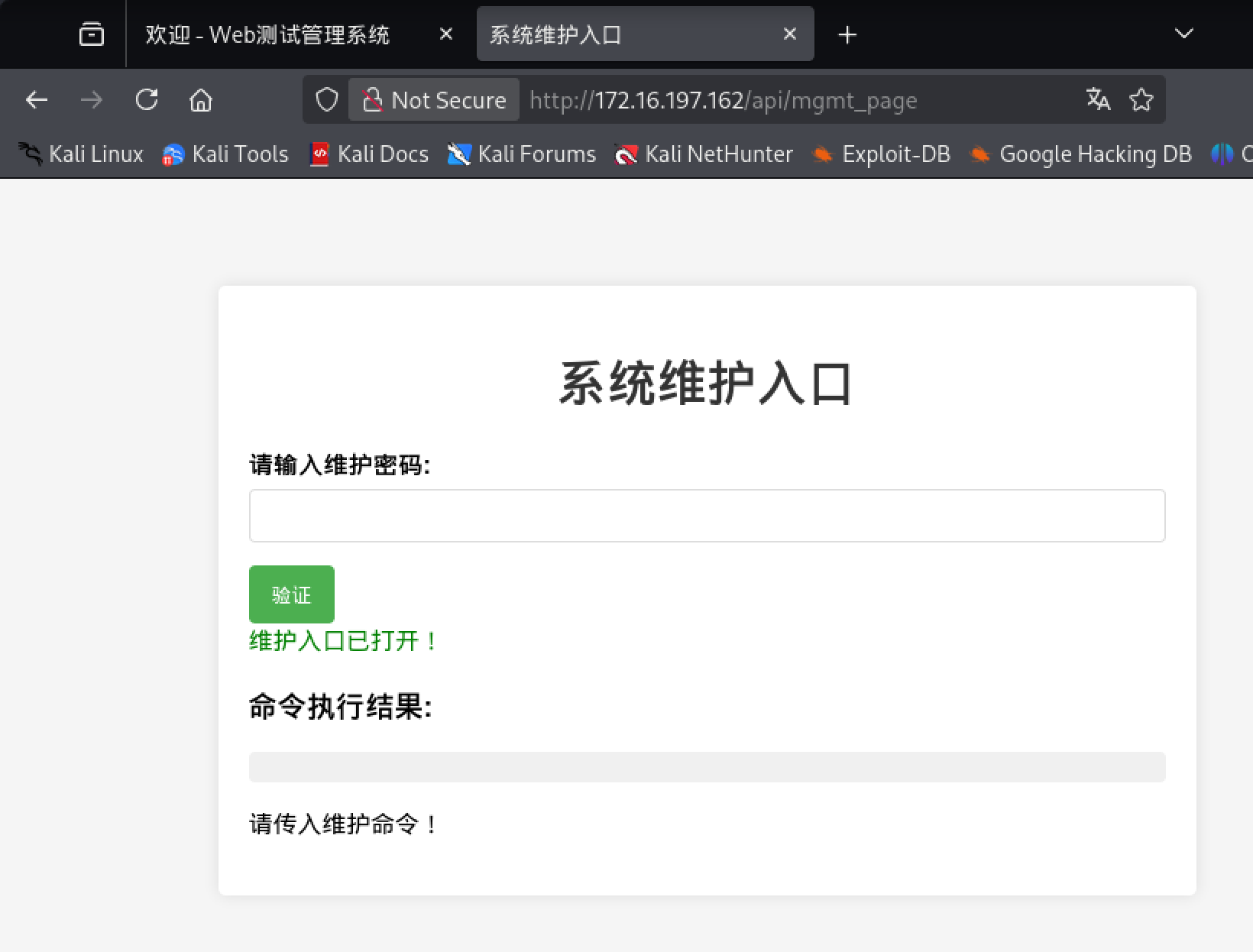 关键发现: 通过mgmt_page页面发现可通过cmd参数执行系统命令