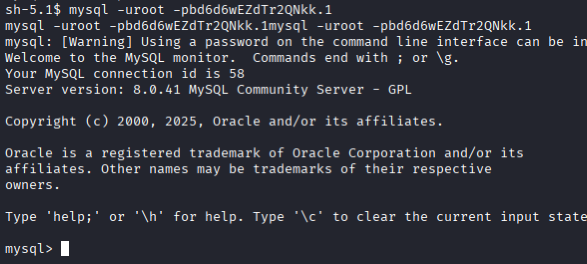 mysql -uroot -pbd6d6wEZdTr2QNkk.1结果图
