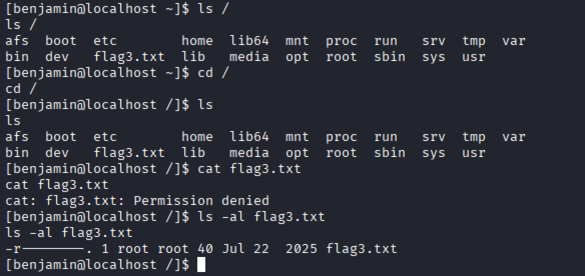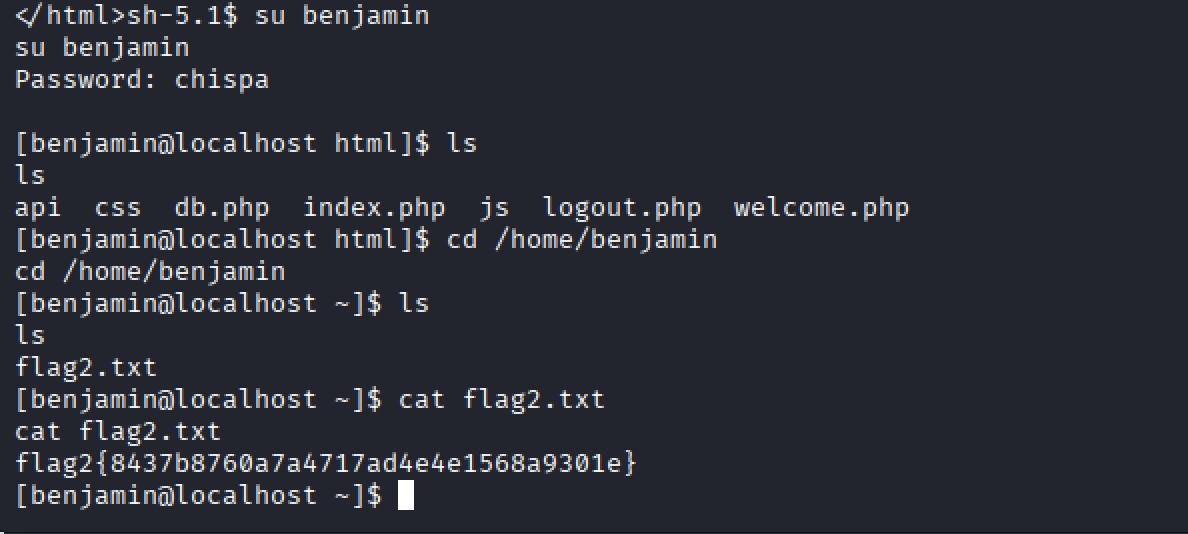 登录benjamin以后再次进行信息收集,然后找到了flag2.txt